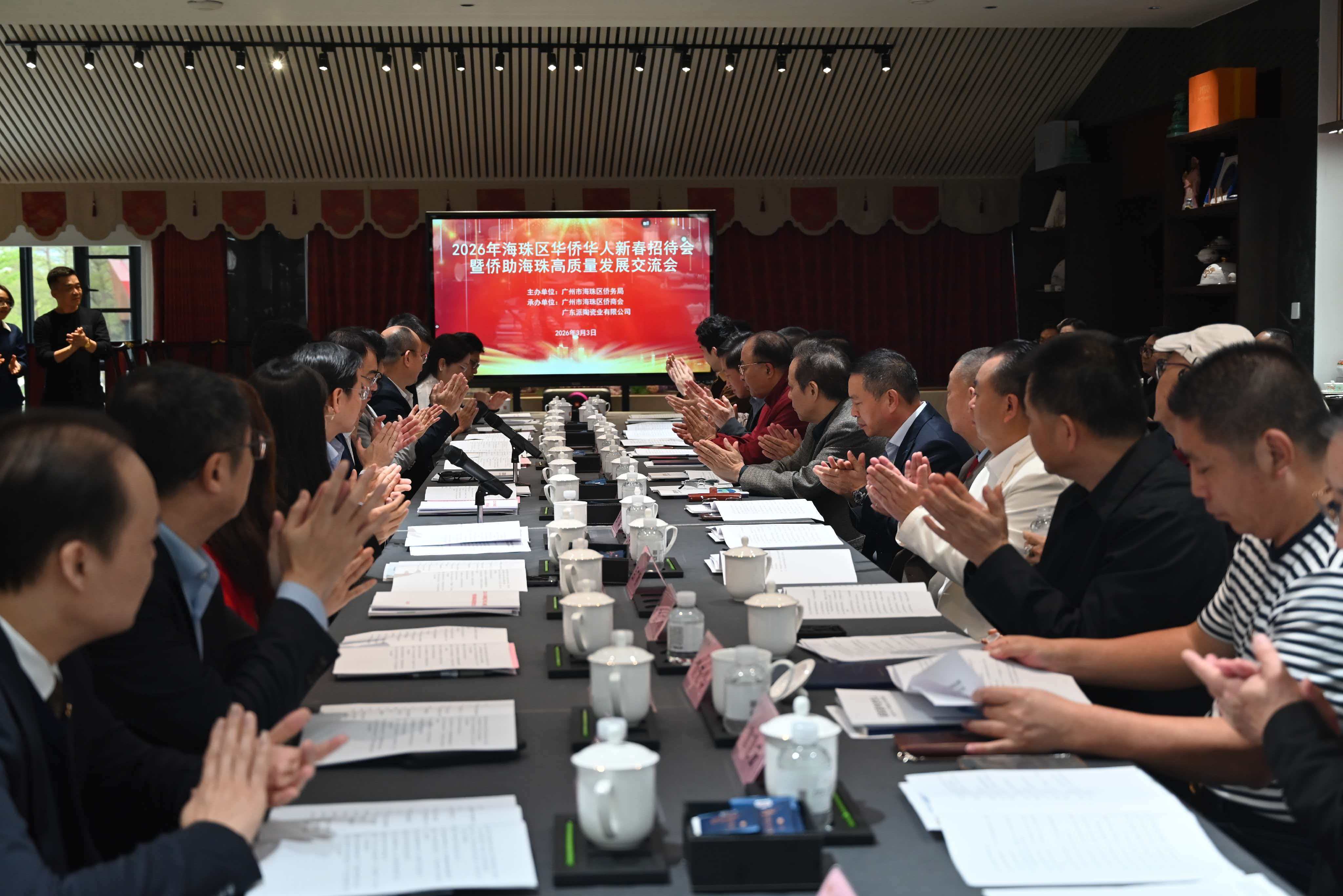 春潮涌动启新程,侨心聚力促发展。近日,2026年海珠区华侨华人新春招待会暨侨助海珠高质量发展交流会在工美港国际数字创新中心举行。活动中,海珠区海侨会客厅正式揭牌启用,30余位海外侨领侨商作为会客厅的首批嘉宾与海珠侨商代表共贺新春、共商合作、共谋发展,聚力共促经济开门红全年胜。